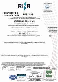 Questa certificazione è valida per tutte le attività di produzione di energia elettrica e vapore mediante combustione di gas siderurgici.
