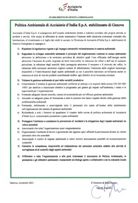 POLITICA AMBIENTALE - STABILIMENTO DI GENOVA